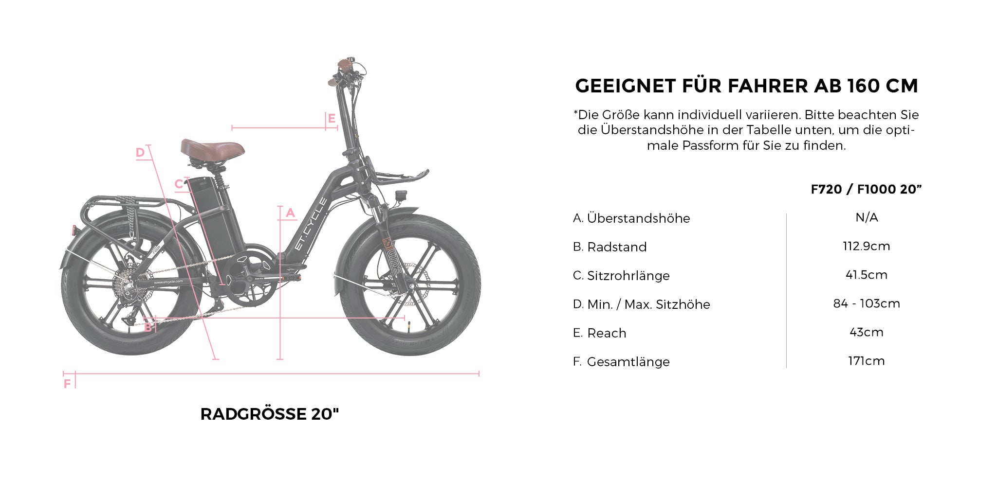 | Rahmen | Aluminium 6061, 415 mm, 20" Fatbike-Laufräder |