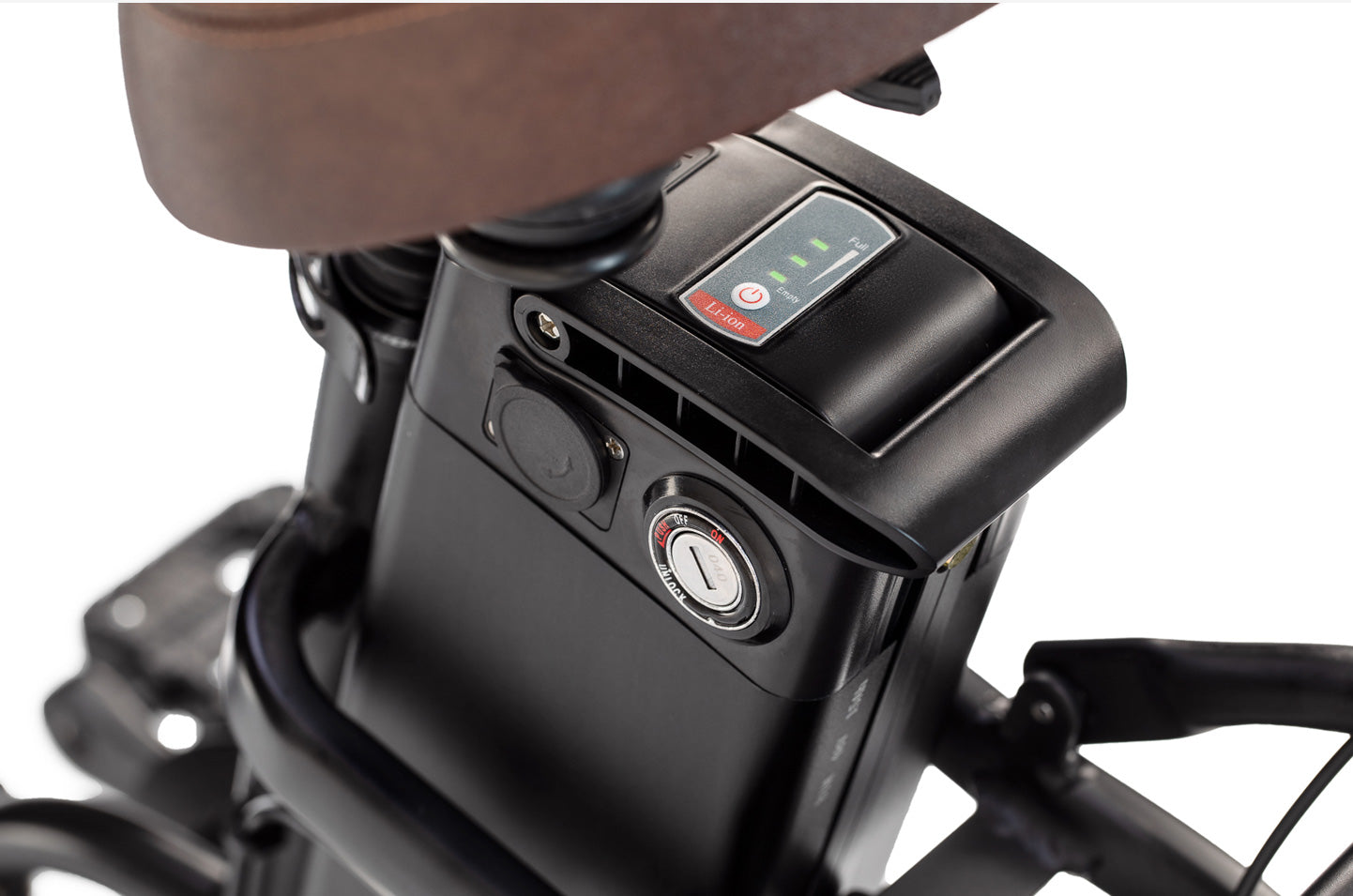 BATTERIE HAUTE PERFORMANCE :  La batterie amovible et verrouillable 48V 21Ah 1008Wh placée au milieu du cadre, sous la selle, permet une répartition basse et centrée du poids, pour une conduite stable. Vous parcourez jusqu'à 200 km en une seule charge. Le port USB est utile lorsque vos appareils intelligents ont besoin d'une charge.
