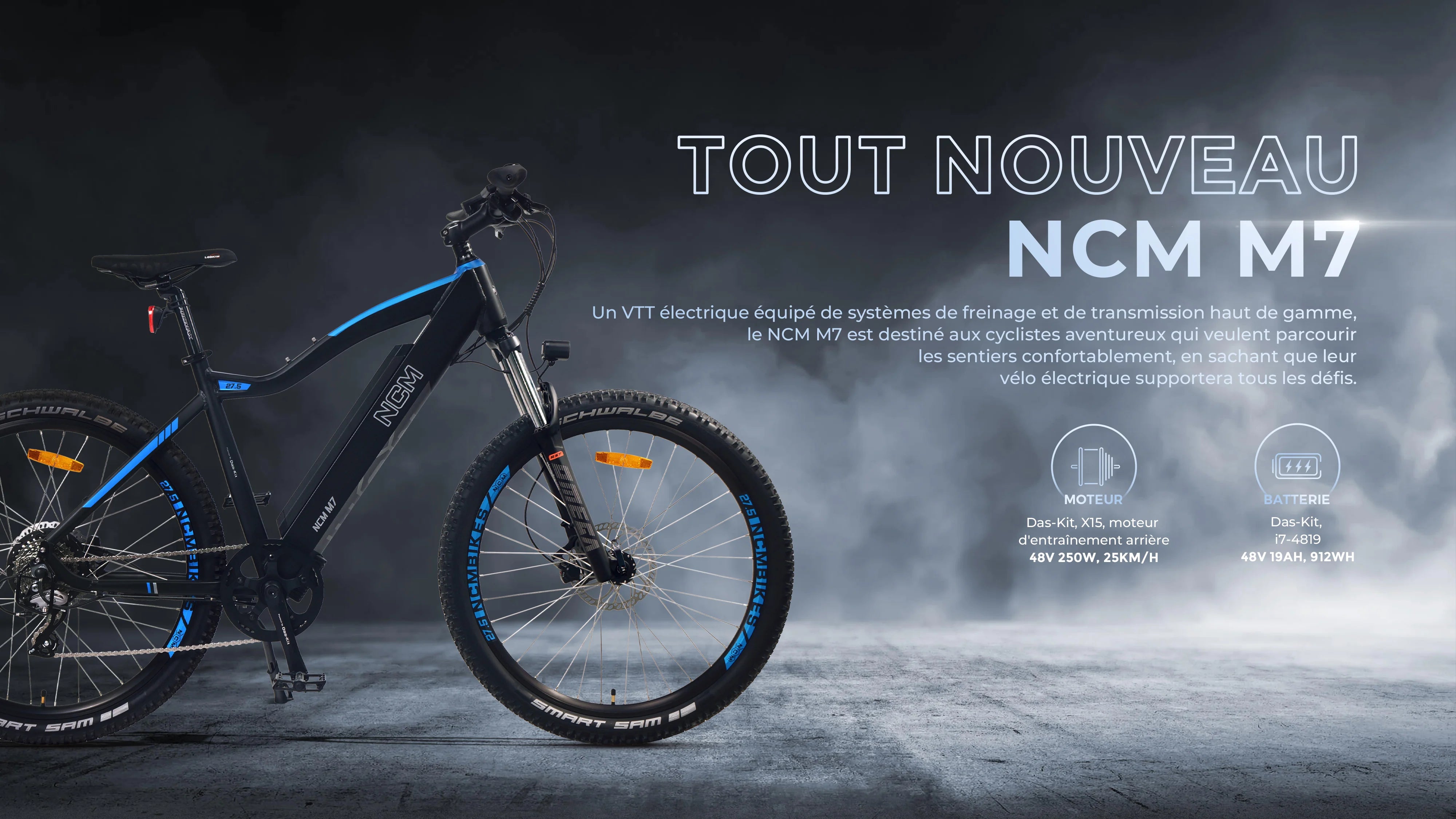 Un vélo de montagne électrique équipé de systèmes de freinage et d'entraînement haut de gamme, le NCM M7 est destiné aux cyclistes aventureux qui veulent parcourir les sentiers à l'aise en sachant que leur vélo électrique peut gérer tout ce qu'ils lui lancent.