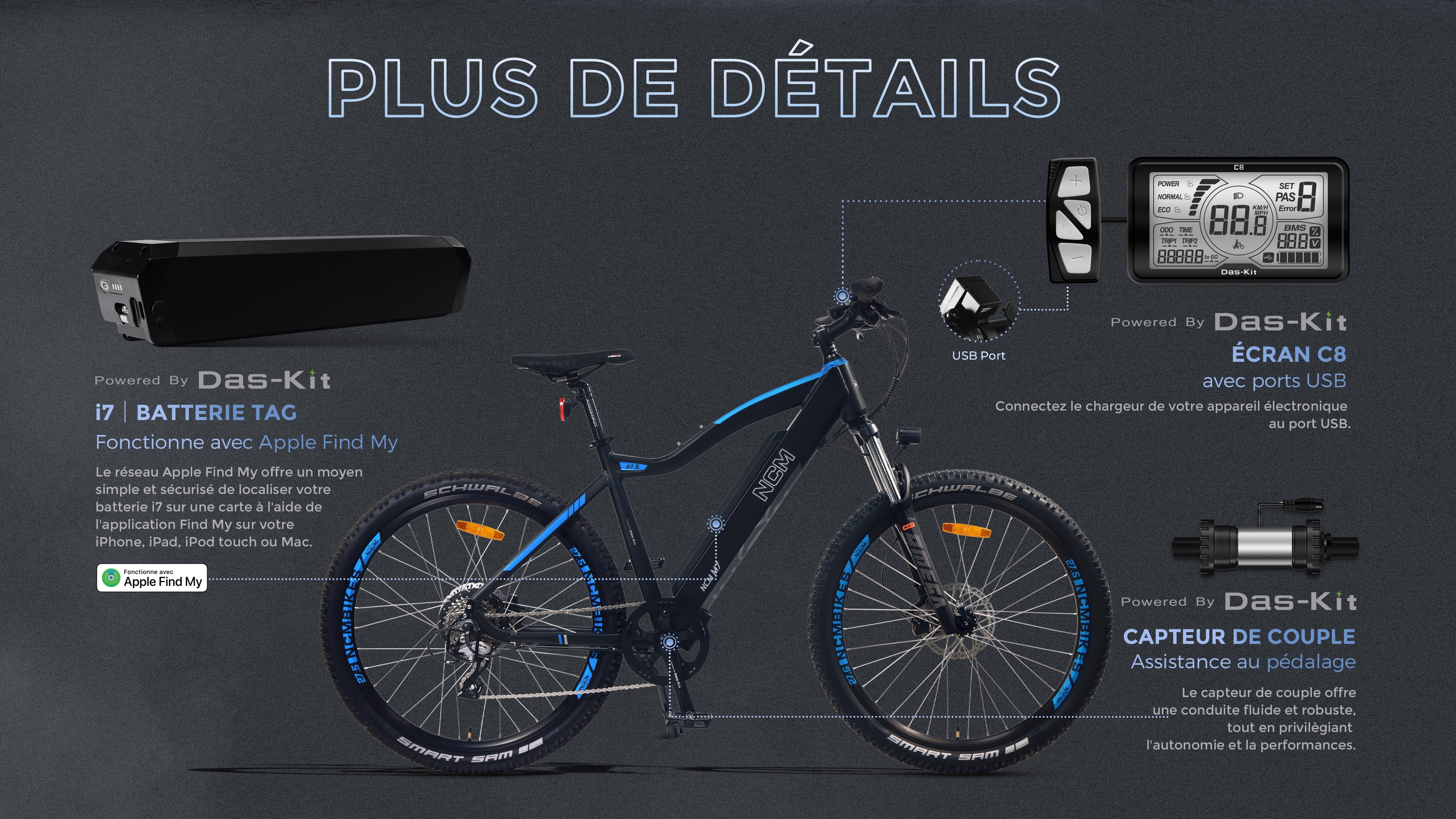 | Batterie | Das-Kit, i7-4819, 48V 19AH, 912Wh, avec technologie TAG |