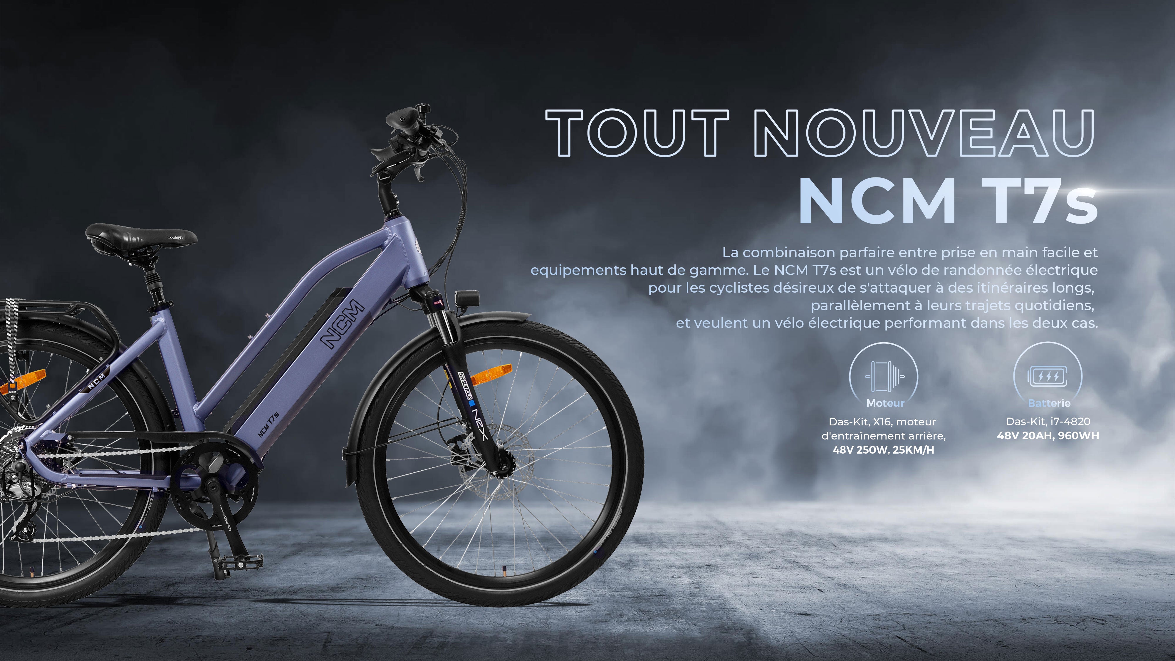 Équilibrant l'accessibilité avec des spécifications supérieures, le NCM T7s est un vélo de randonnée électrique pas à pas pour les cyclistes désireux de s'attaquer à des itinéraires plus longs parallèlement à leurs trajets quotidiens et qui souhaitent un vélo électrique avec la gamme et l'intégrité pour les aider à le faire.