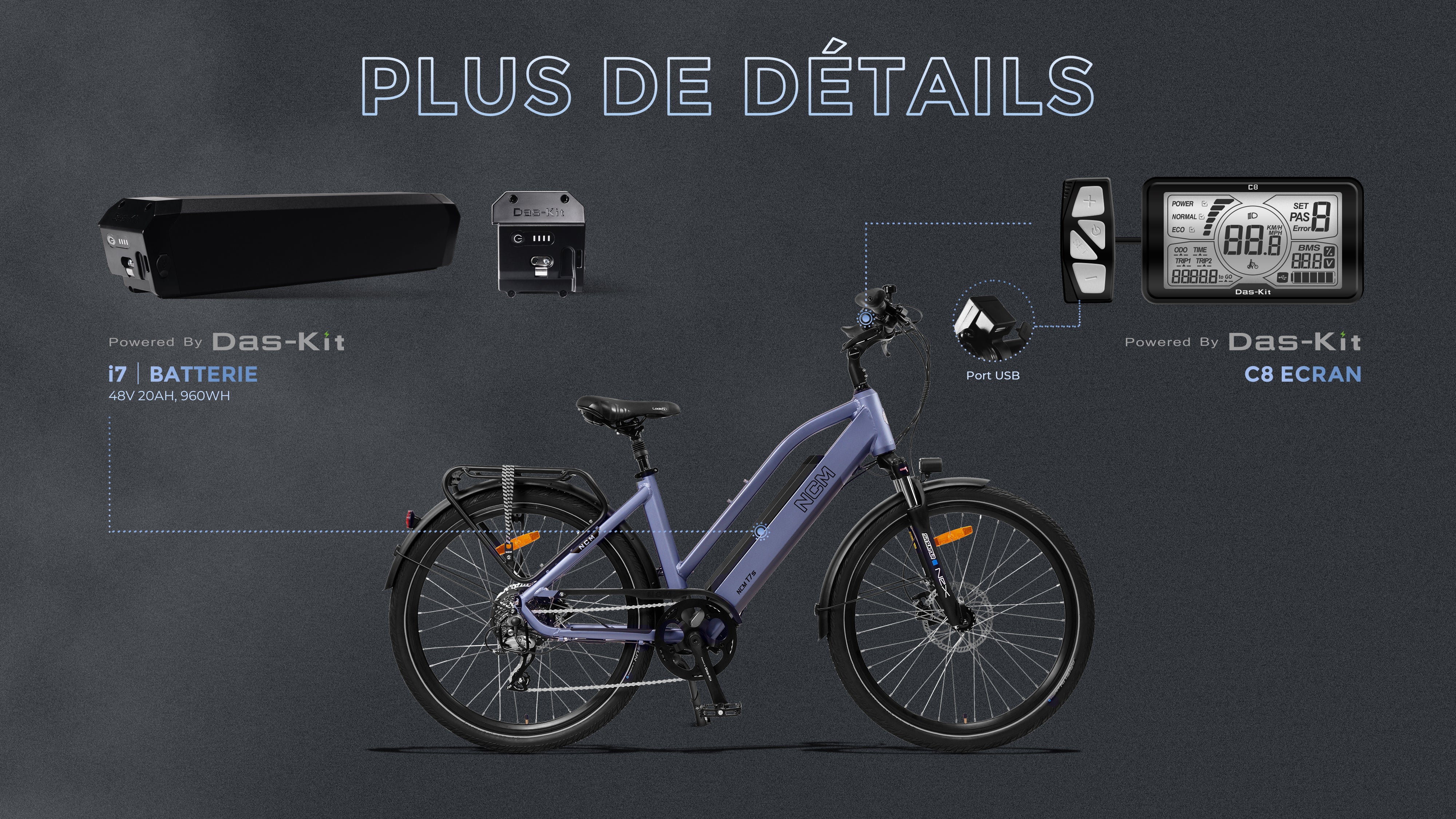 Batterie Das-Kit, i7-4819, 48V19AH, 912Wh, avec technologie TAG